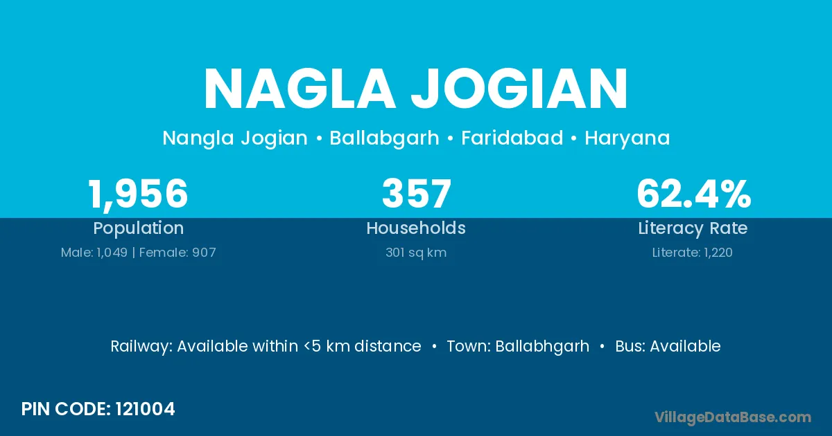 Ballabhgarh is the nearest town to Nagla Jogian village for major economic activities