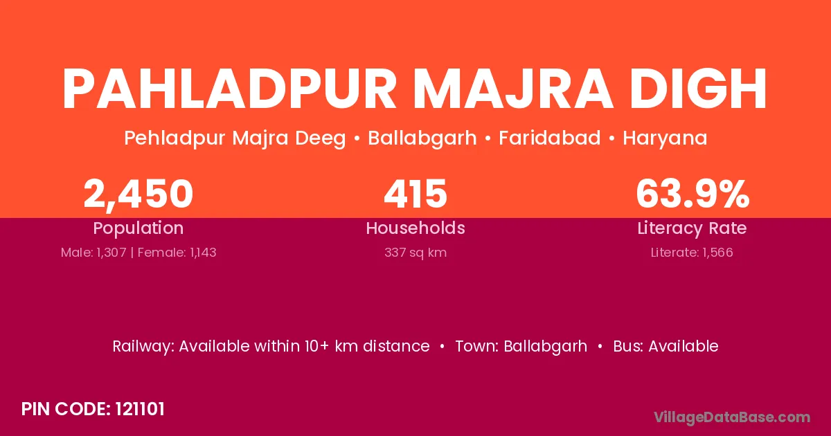 Ballabgarh is the nearest town to Pahladpur Majra Digh village for major economic activities