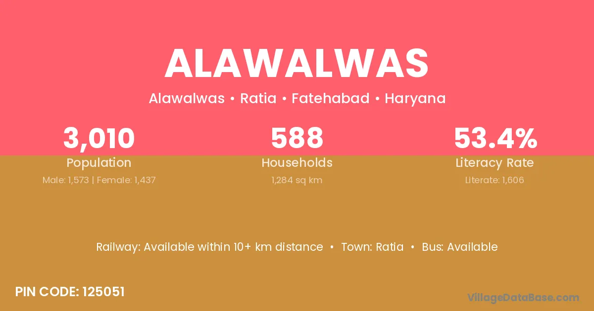 Ratia is the nearest town to Alawalwas village for major economic activities