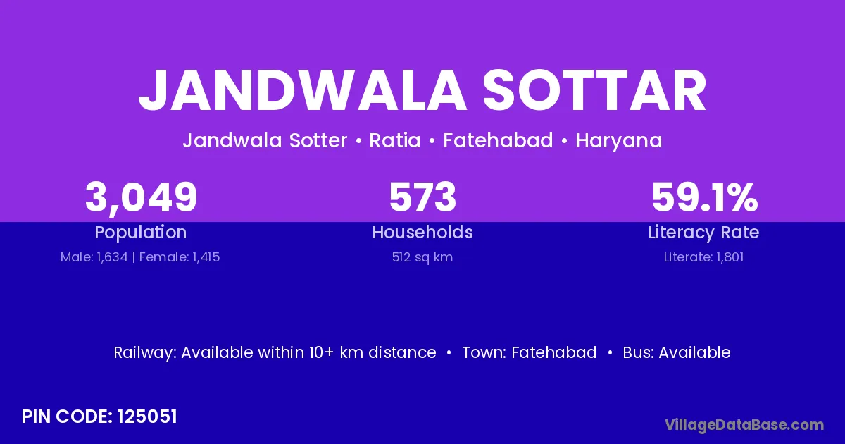 Jandwala Sottar village has a total population of 3,049 people, of which 1,634 are males and 1,415 are females.