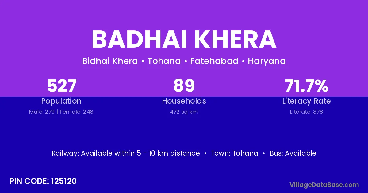 Tohana is the nearest town to Badhai Khera village for major economic activities