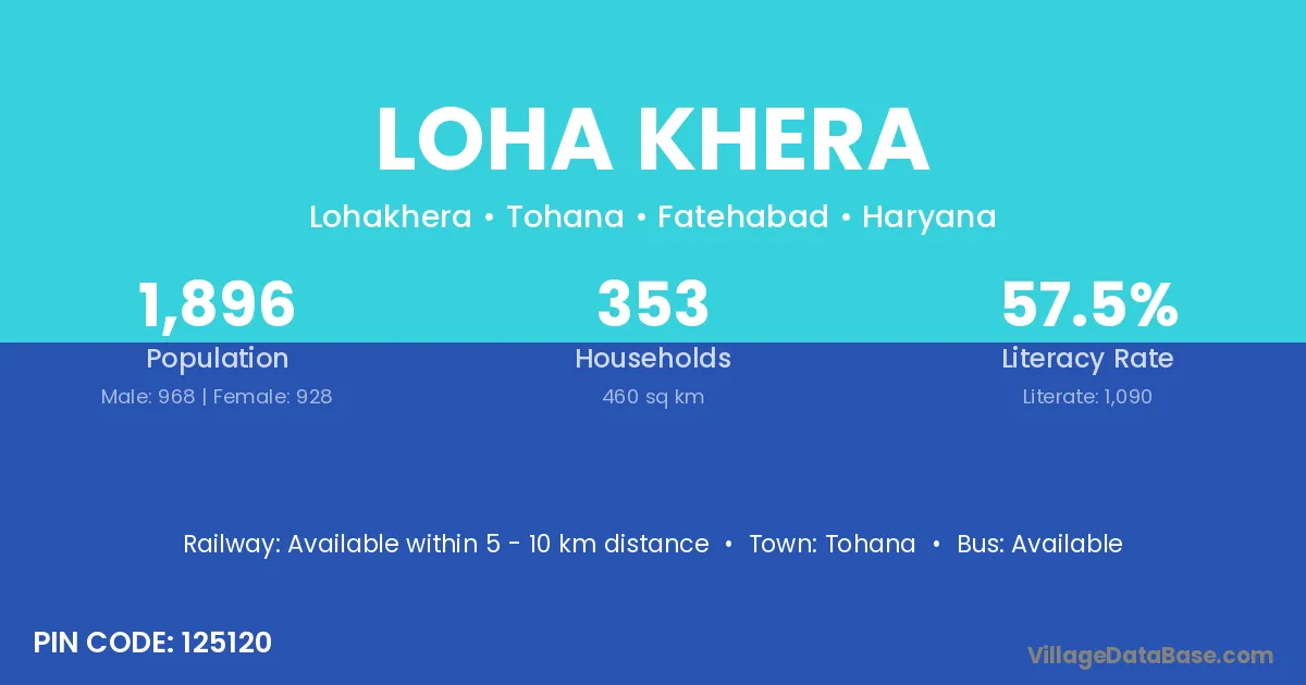 Tohana is the nearest town to Loha Khera village for major economic activities