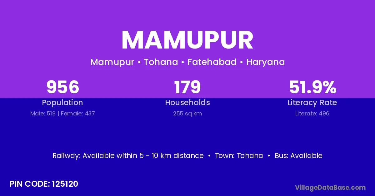 Mamupur village has a total population of 956 people, of which 519 are males and 437 are females.