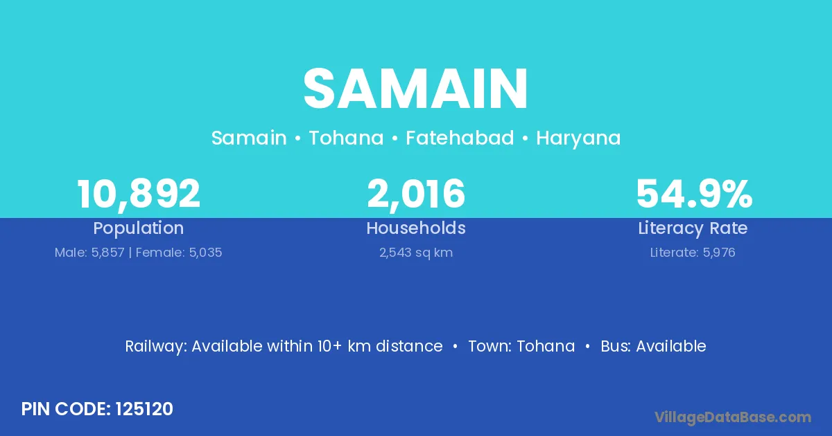 Samain village has a total population of 10,892 people, of which 5,857 are males and 5,035 are females.