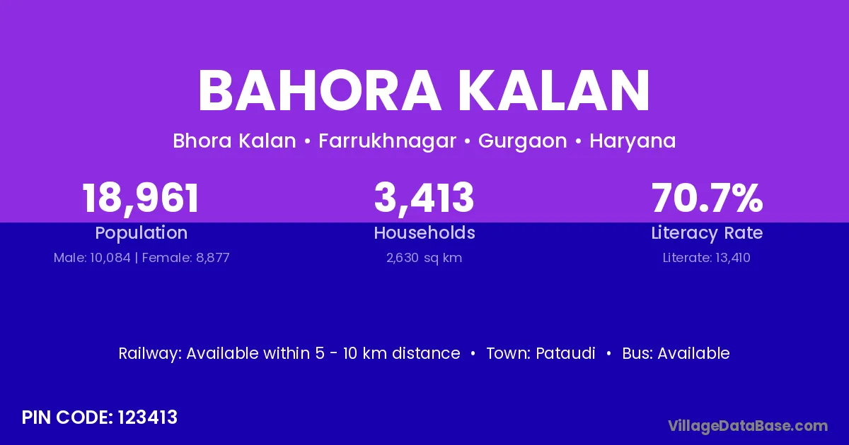 Pataudi is the nearest town to Bahora Kalan village for major economic activities