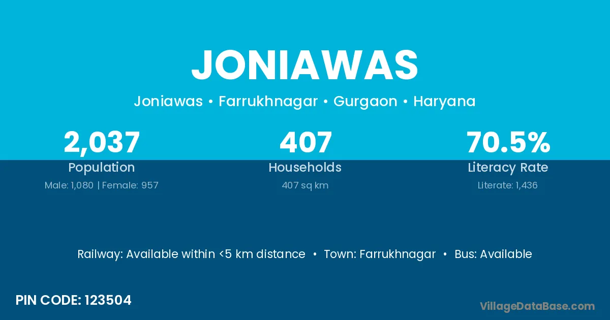 Farrukhnagar is the nearest town to Joniawas village for major economic activities