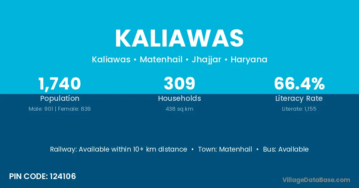 Kaliawas village has a total population of 1,926 people, of which 1,012 are males and 914 are females.