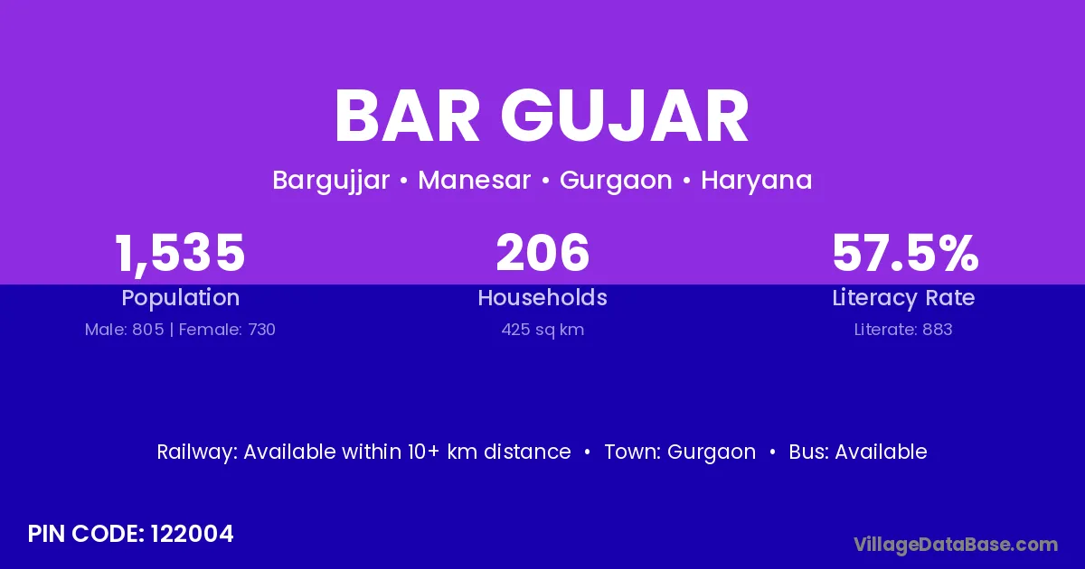 Gurgaon is the nearest town to Bar Gujar village for major economic activities
