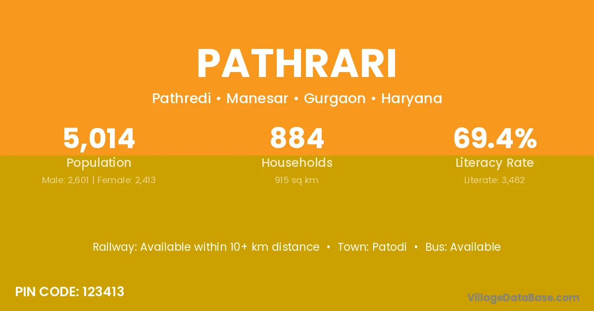 According to Census 2011 information, the village code of Pathrari village is 123413.