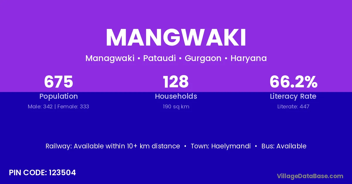 According to Census 2011 information, the village code of Mangwaki village is 123504.