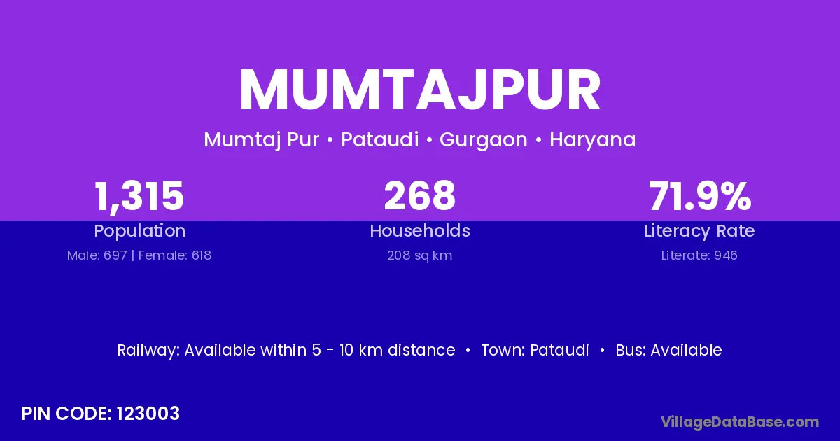Pataudi is the nearest town to Mumtajpur village for major economic activities