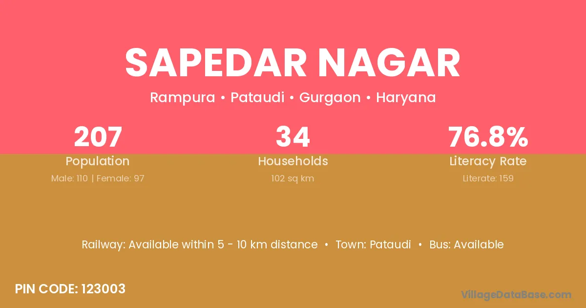Sapedar Nagar village has a total population of 207 people, of which 110 are males and 97 are females.