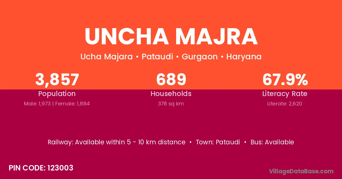 Uncha Majra village has a total population of 3,857 people, of which 1,973 are males and 1,884 are females.