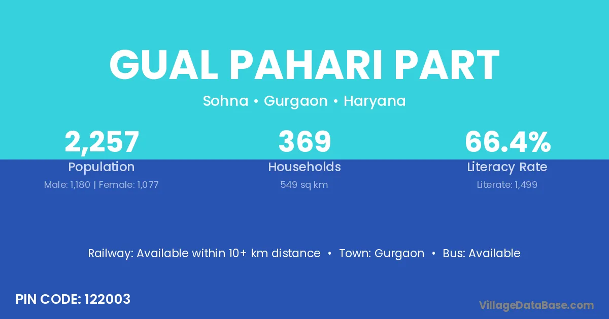 According to Census 2011 information, the village code of Gual Pahari Part village is 122003.