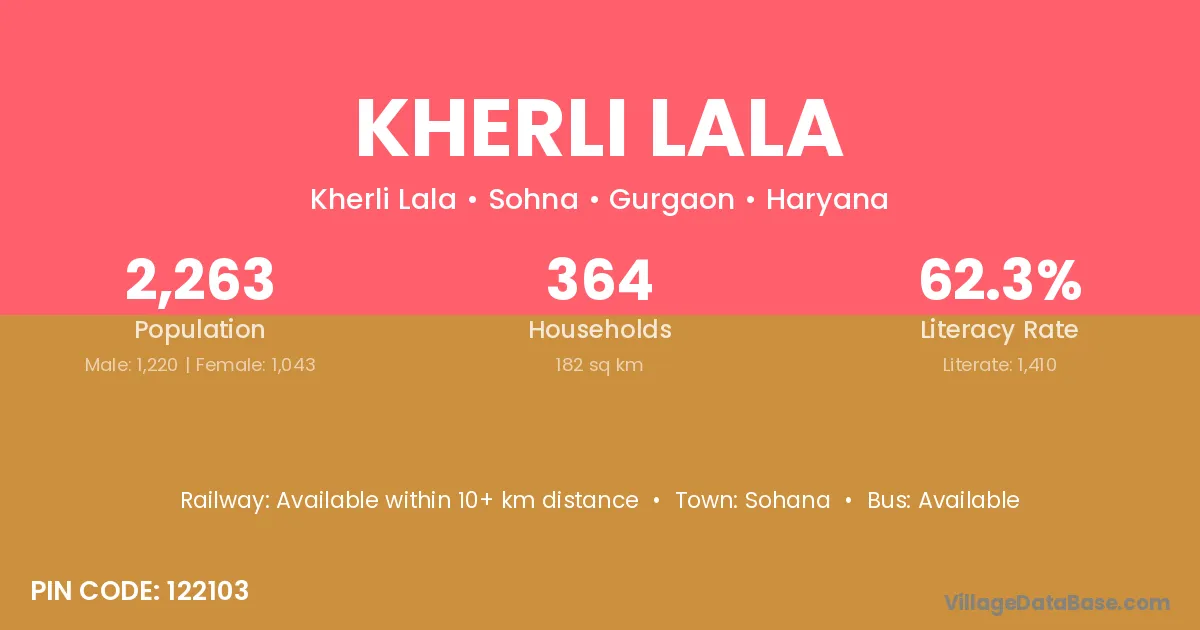 Kherli Lala village has a total population of 2,263 people, of which 1,220 are males and 1,043 are females.
