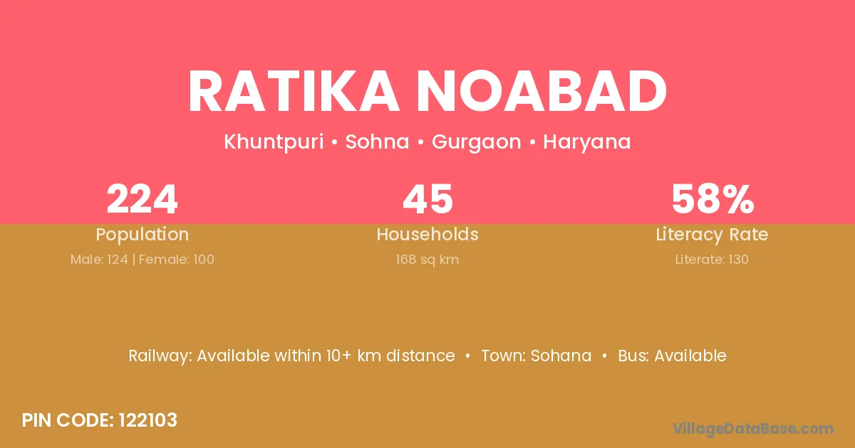 Ratika Noabad village has a total population of 224 people, of which 124 are males and 100 are females.