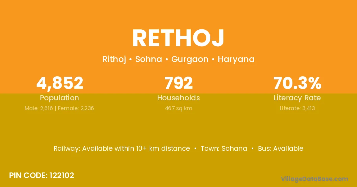 According to Census 2011 information, the village code of Rethoj village is 122102.
