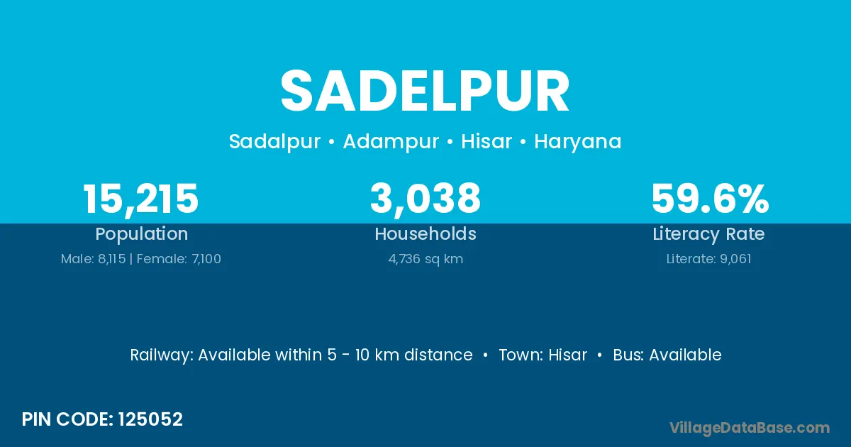 Hisar is the nearest town to Sadelpur village for major economic activities