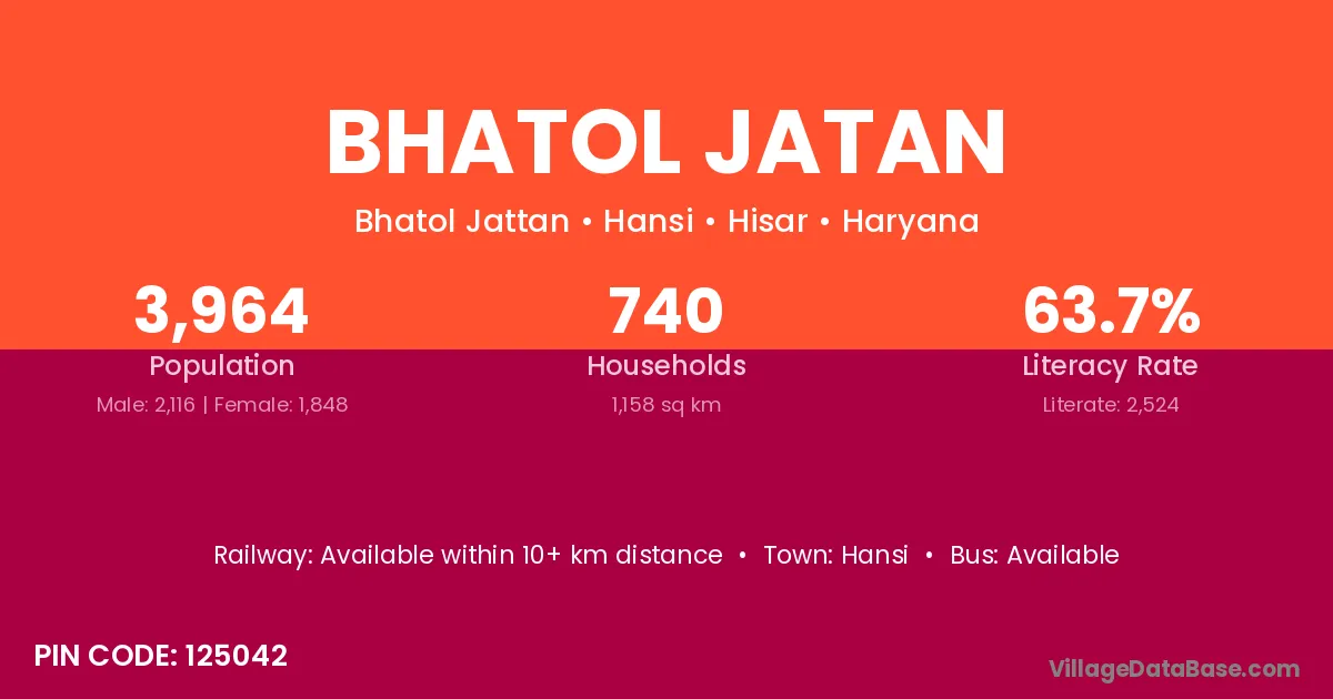 Hansi is the nearest town to Bhatol Jatan village for major economic activities