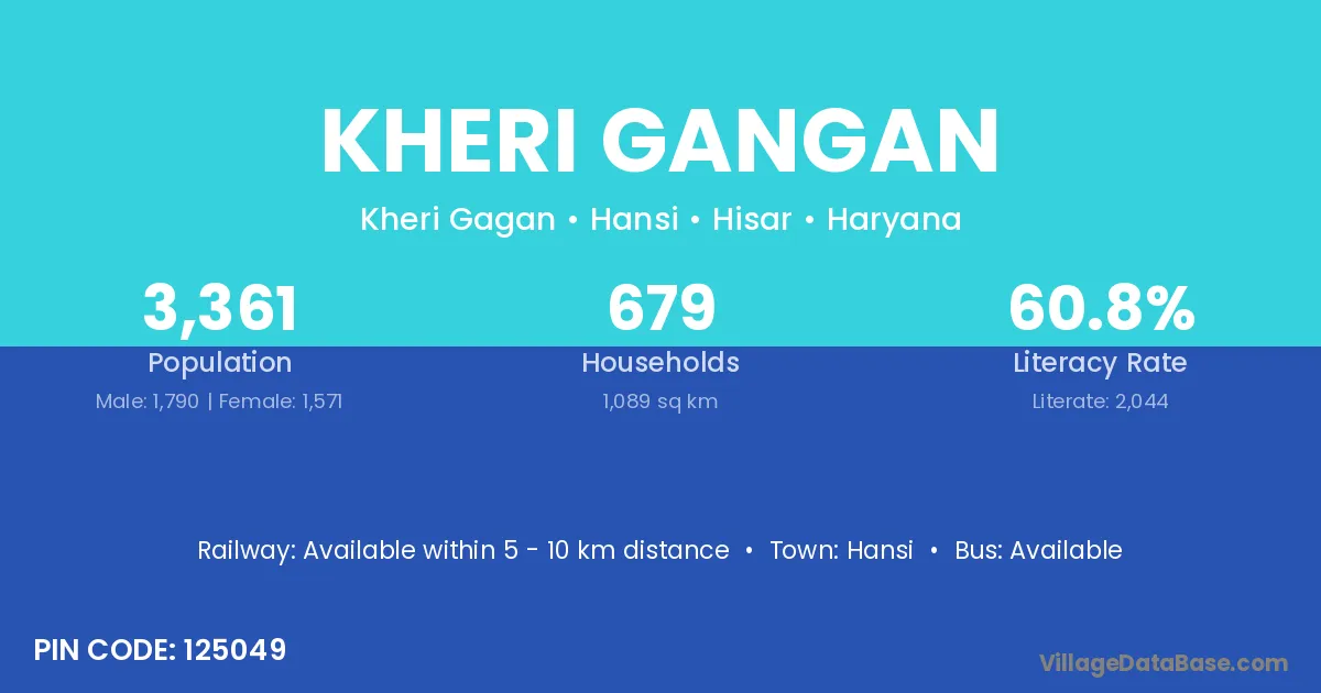 Hansi is the nearest town to Kheri Gangan village for major economic activities