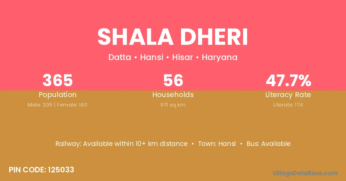 Hansi is the nearest town to Shala Dheri village for major economic activities