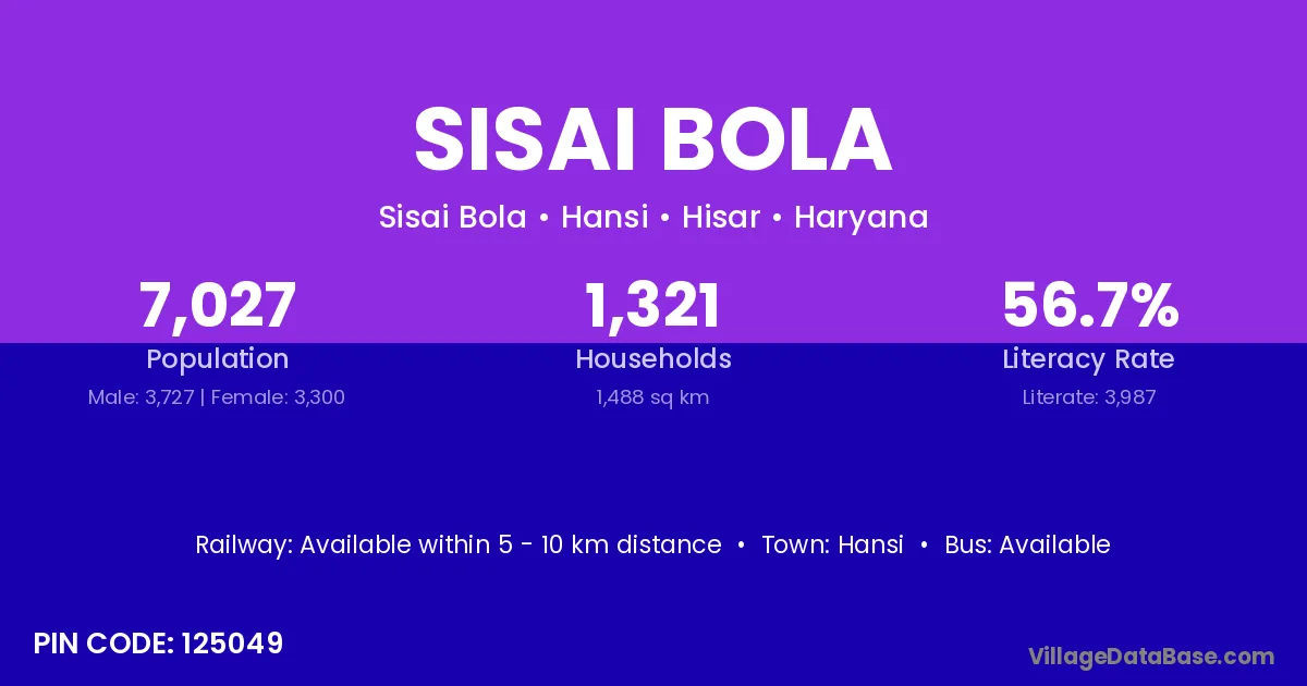 Sisai Bola village is located in the Hansi Tehsil of the Hisar district in Haryana .