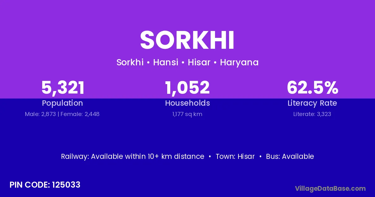 Hisar is the nearest town to Sorkhi village for major economic activities