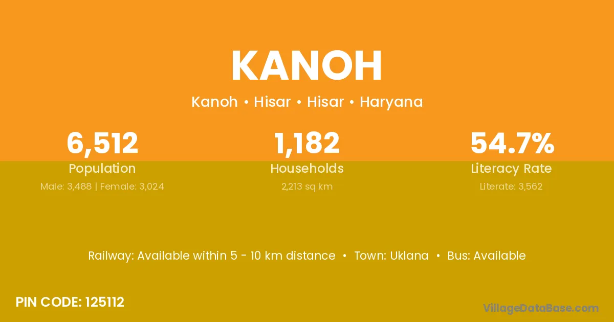 Kanoh village has a total population of 6,512 people, of which 3,488 are males and 3,024 are females.