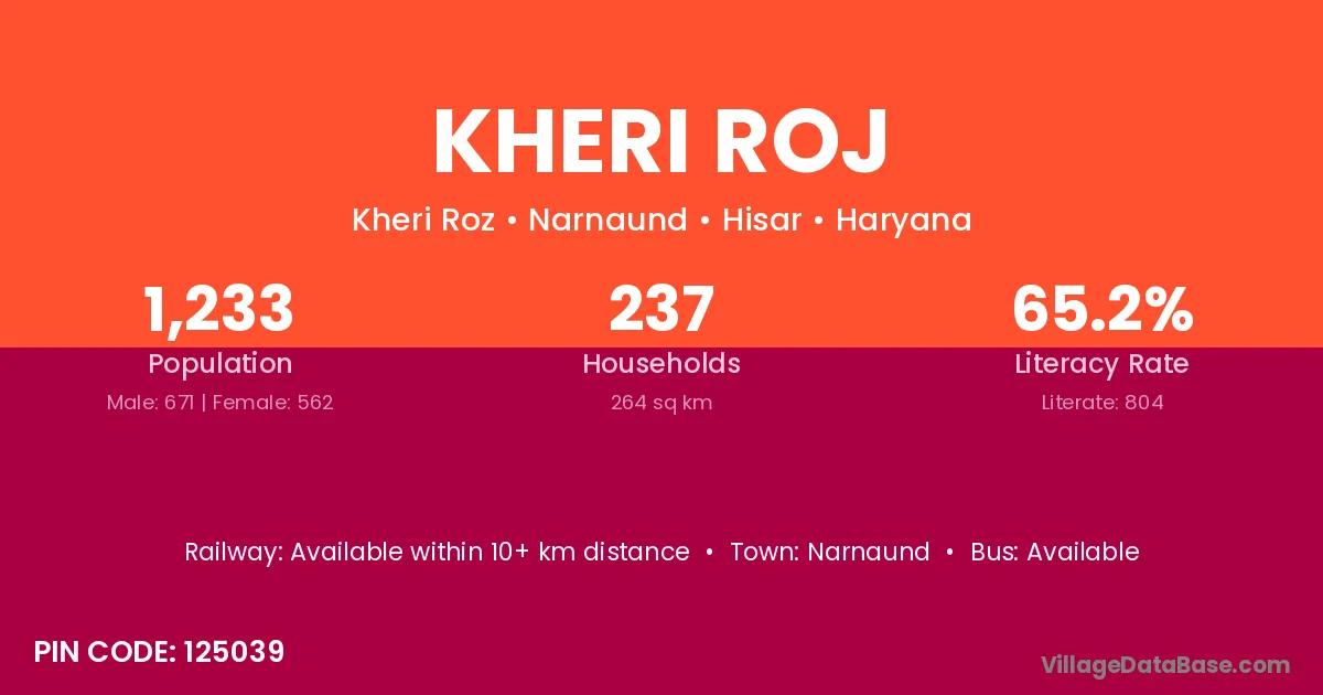 According to Census 2011 information, the village code of Kheri Roj village is 125039.