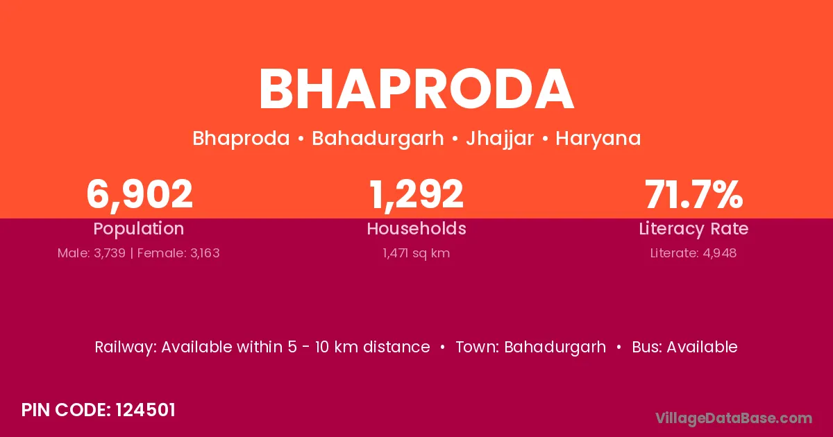 Bahadurgarh is the nearest town to Bhaproda village for major economic activities