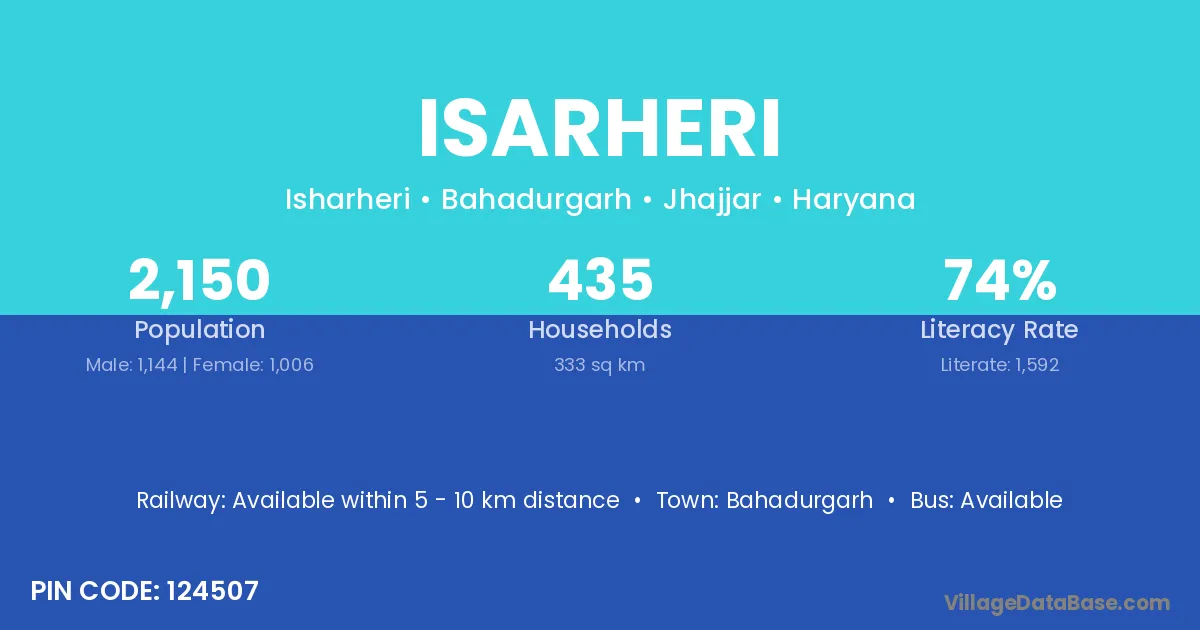 Bahadurgarh is the nearest town to Isarheri village for major economic activities
