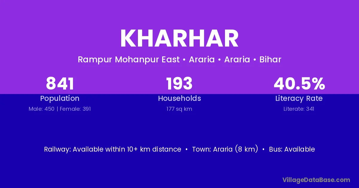 Kharhar village has a total population of 6,124 people, of which 3,335 are males and 2,789 are females.