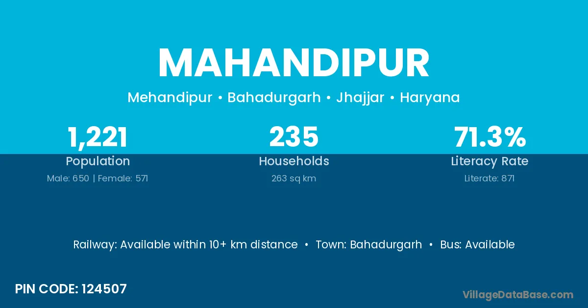 Mahandipur village has a total population of 1,221 people, of which 650 are males and 571 are females.