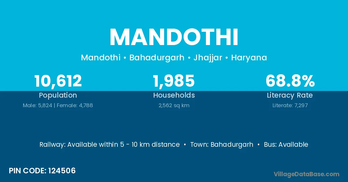 Bahadurgarh is the nearest town to Mandothi village for major economic activities