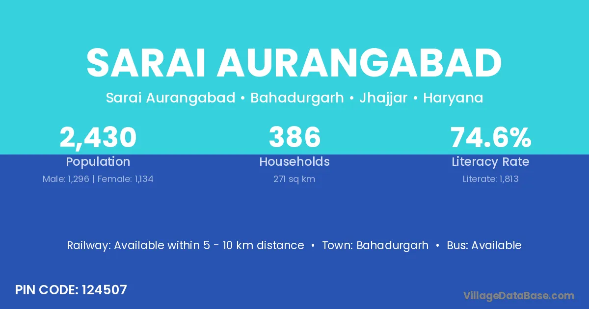 According to Census 2011 information, the village code of Sarai Aurangabad village is 124507.