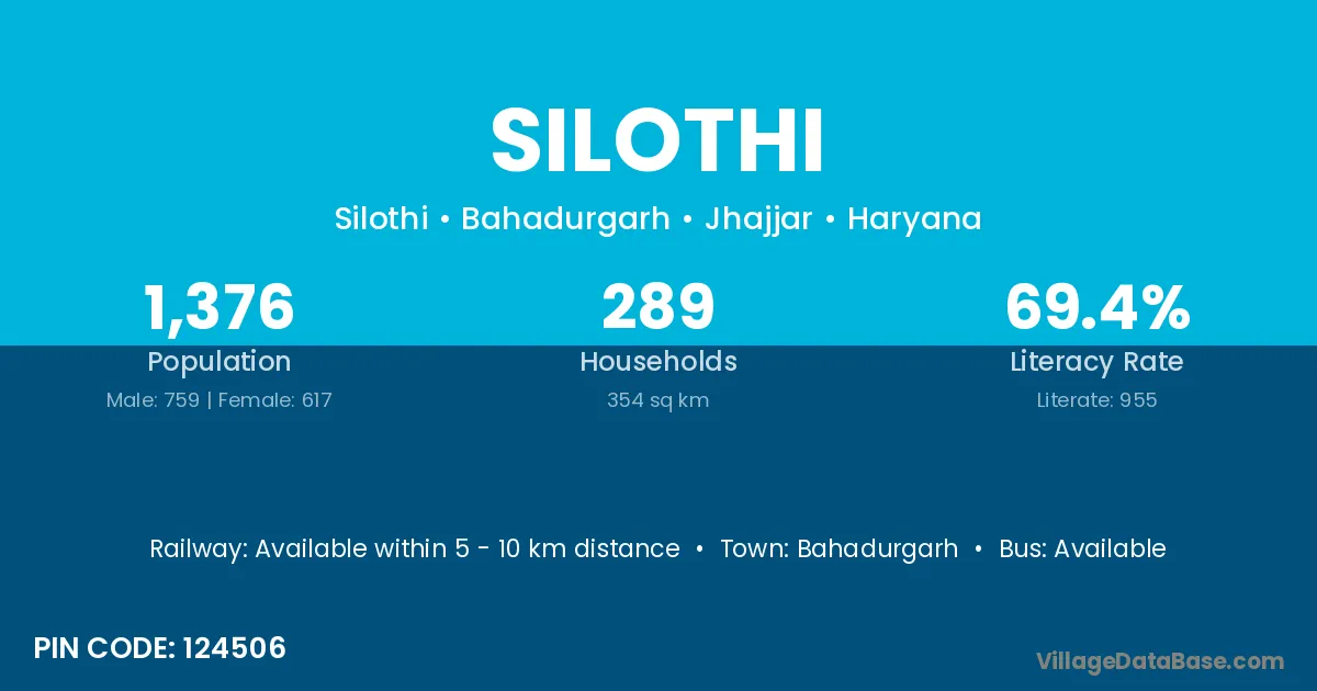 Bahadurgarh is the nearest town to Silothi village for major economic activities