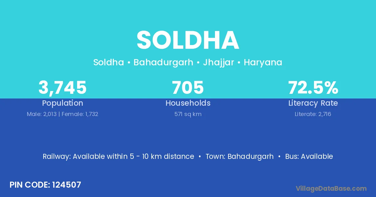 According to Census 2011 information, the village code of Soldha village is 124507.