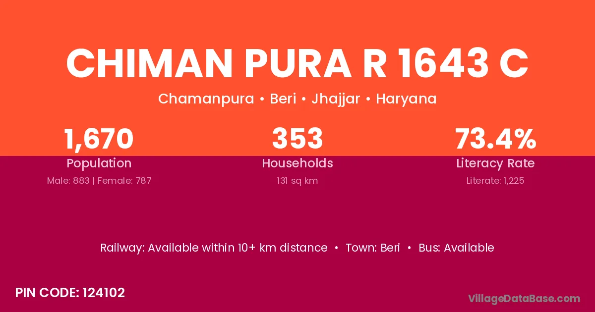 Chiman Pura R 1643 C village is located in the Beri Tehsil of the Jhajjar district in Haryana .