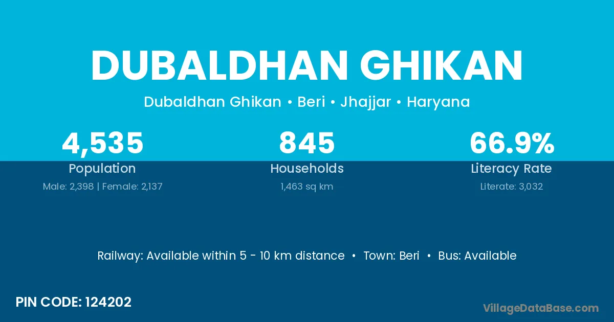 Beri is the nearest town to Dubaldhan Ghikan village for major economic activities