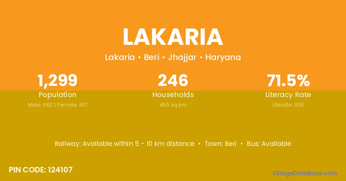 Beri is the nearest town to Lakaria village for major economic activities
