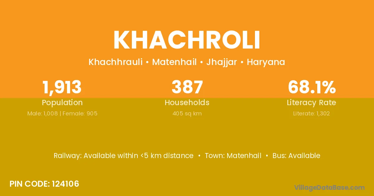 According to Census 2011 information, the village code of Khachroli village is 124106.