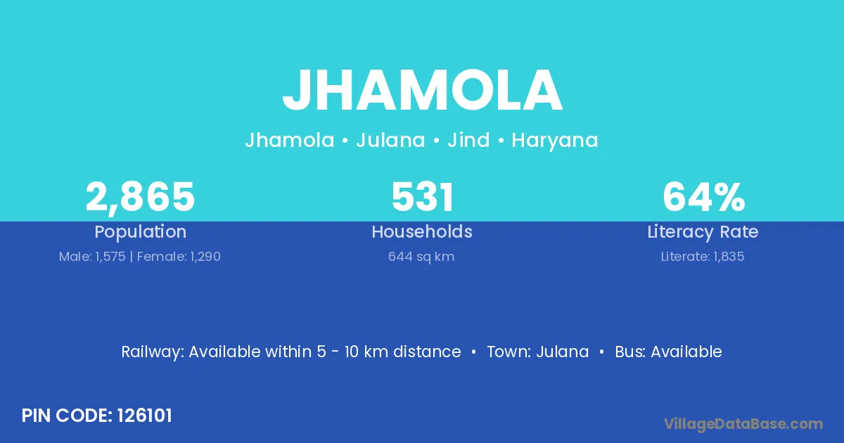 Jhamola village has a total population of 2,865 people, of which 1,575 are males and 1,290 are females.