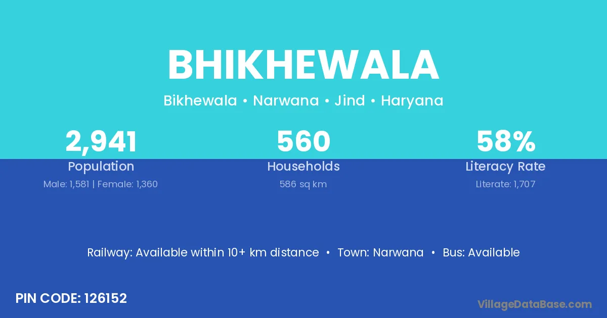 Bhikhewala village has a total population of 2,941 people, of which 1,581 are males and 1,360 are females.