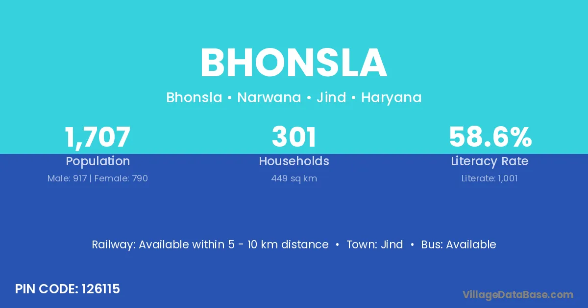 Jind is the nearest town to Bhonsla village for major economic activities