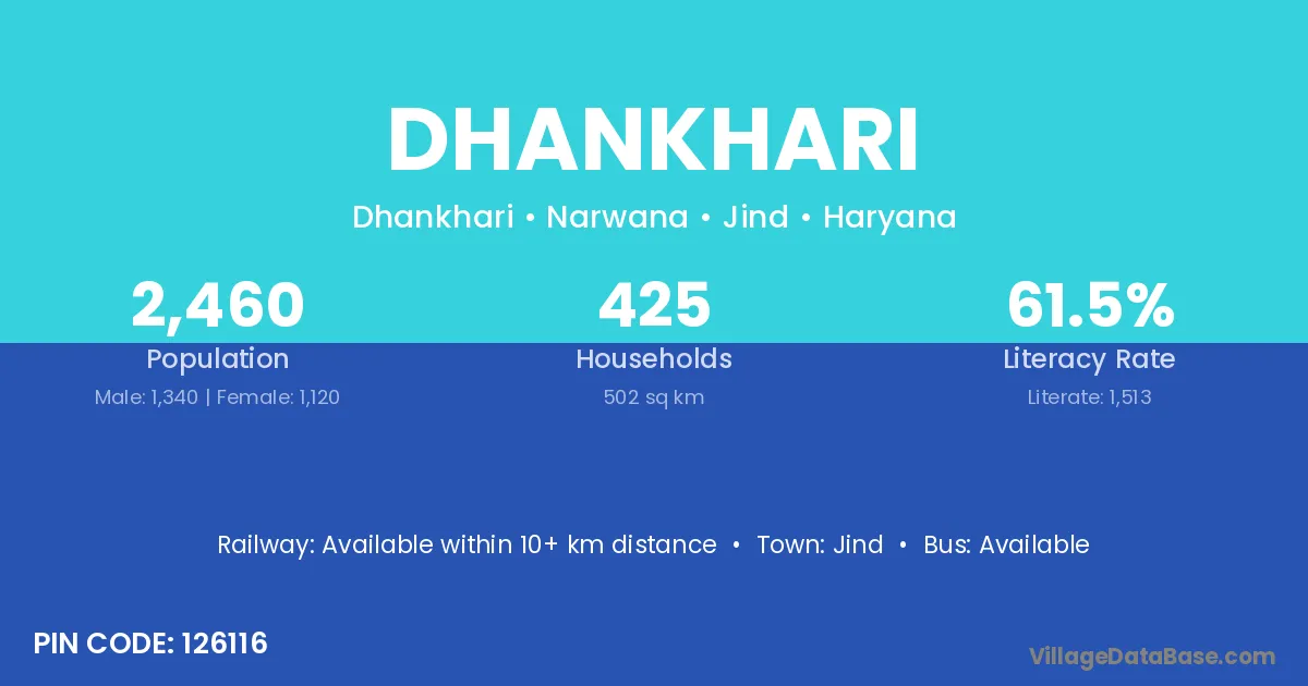 Jind is the nearest town to Dhankhari village for major economic activities