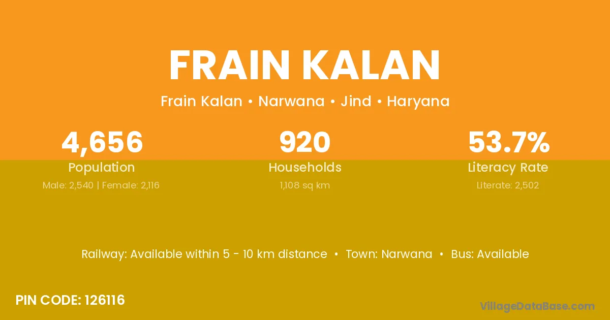 Narwana is the nearest town to Frain Kalan village for major economic activities