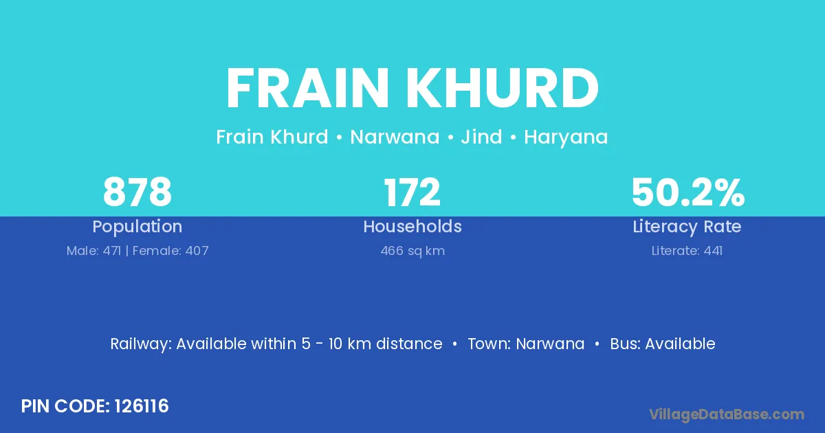 Narwana is the nearest town to Frain Khurd village for major economic activities