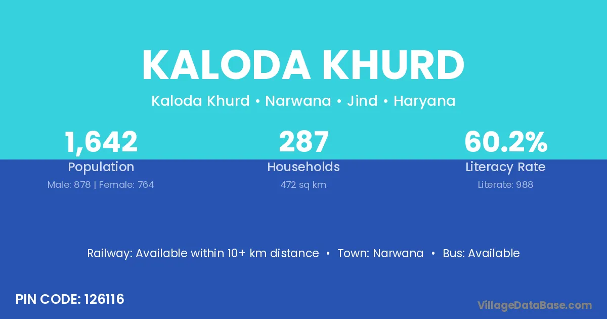Narwana is the nearest town to Kaloda Khurd village for major economic activities