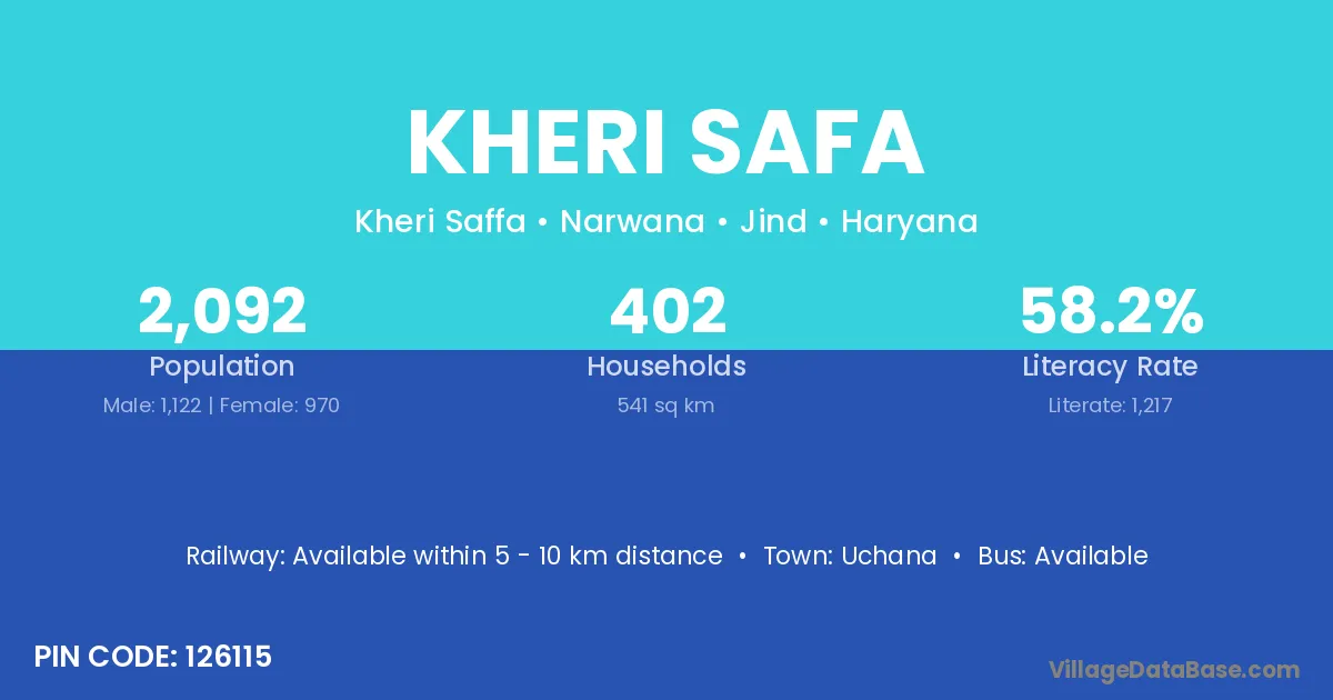 Kheri Safa village has a total population of 2,092 people, of which 1,122 are males and 970 are females.