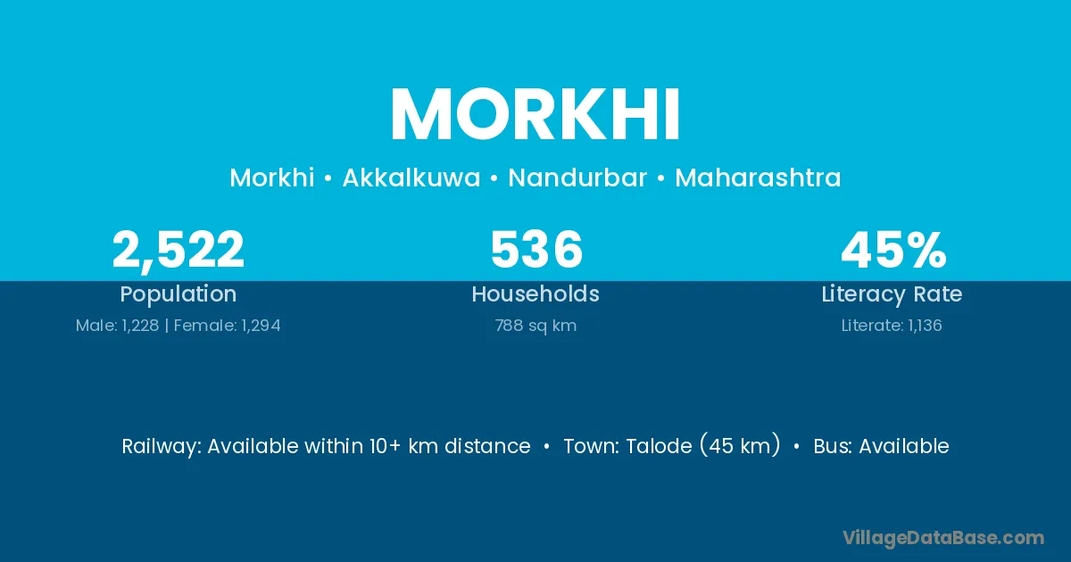 Morkhi village has a total population of 6,162 people, of which 3,402 are males and 2,760 are females.